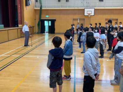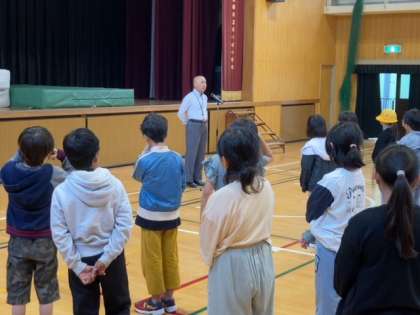 全校朝会では校長先生からこの日が設定されたわけ、いじめについて、いのちについての話がありました。