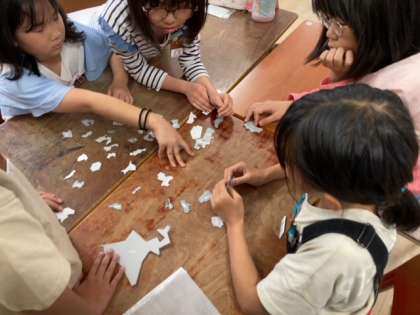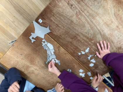 4年生は総合の時間で、日本地図のパズルに取り組んでいました。