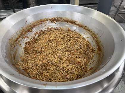 食べやすいように、麺を半分に折って茹でています。おかわりの列にたくさん並んでいました。