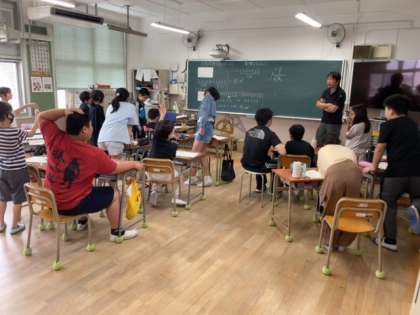 ひらめいた児童がそれをジェスチャーでみんなに伝えようとしていました。