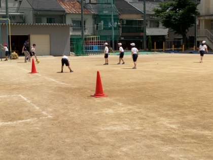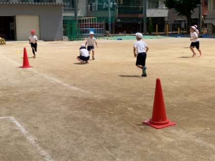 1つ目のコーンまで走り切れたら1点、2つ目で2点というルールでやっていました。