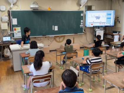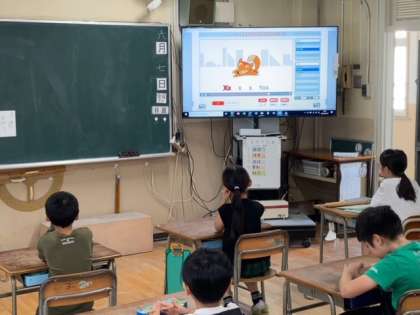 アルファベットの動物ジングルを歌っていました。楽しい曲に合わせて自然に英語を覚えていけますね。