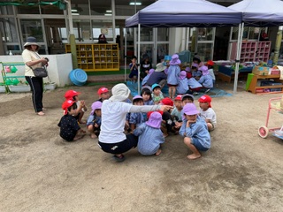 最後に片付けした後に、楽しかったこと、感じたことを交流しています。