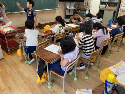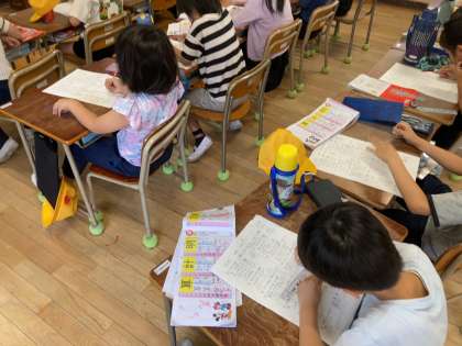 くり上がりのあるたし算、くり下がりのあるひき算の練習をしています。