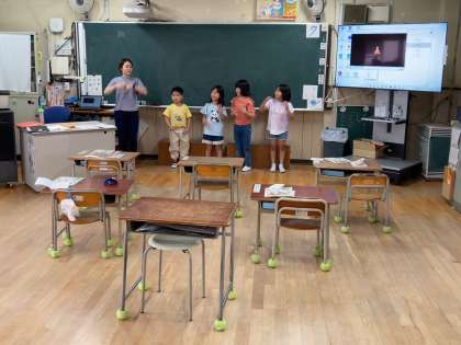 「にじ」を手話をつけて歌ってくれました。習いたてなのもあり恥ずかしそうにしていましたが笑顔いっぱいの一年生が見られました。