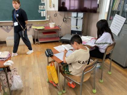 「ノートの達人になろう」ということで、ノートを書くときに気をつける字のバランスについて意識しながら、硬筆の練習をしていました。
