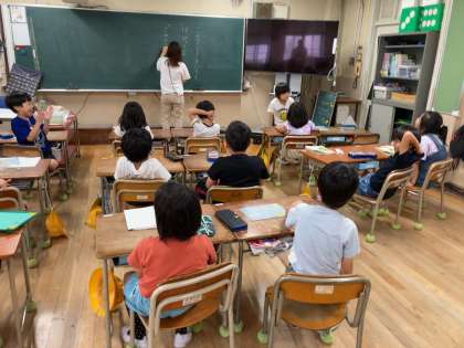 休みの日の様子をそれぞれ作文にまとめたものを発表し合い、よかったところを伝えていました。