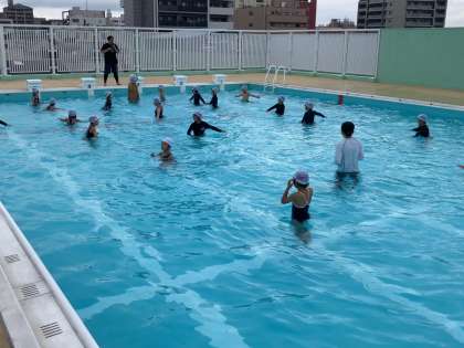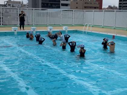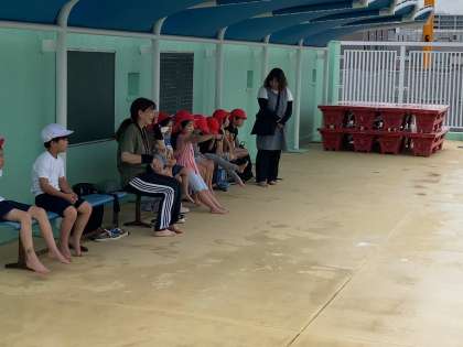今日は低学年のプール学習の時間に、東小橋保育所の5歳児さんがプール学習の見学にきていました。