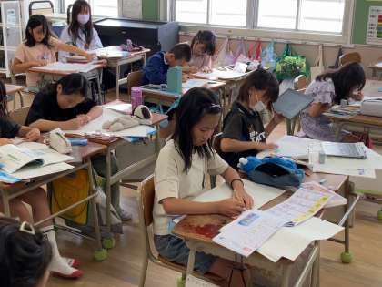 ワークシートに書いたあらすじを元に原稿用紙に物語を書いている途中です。