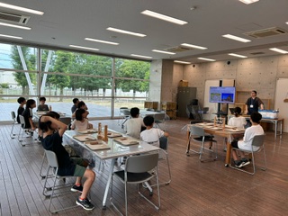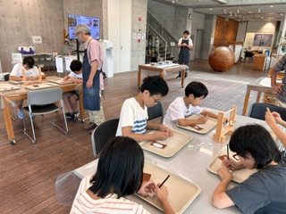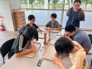 弥生文化学習館で勾玉作りをしています。