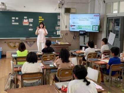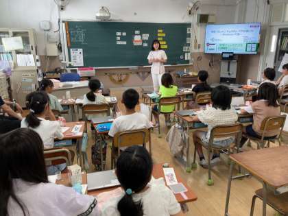 フッ化物洗口の前にはみがきについての話を聞き、ガムを使っての噛む力チェックをしていました。