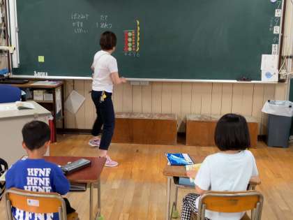「わかりやすい整理しよう」の単元で、絵をグラフのように並べて数のちがいをみています。