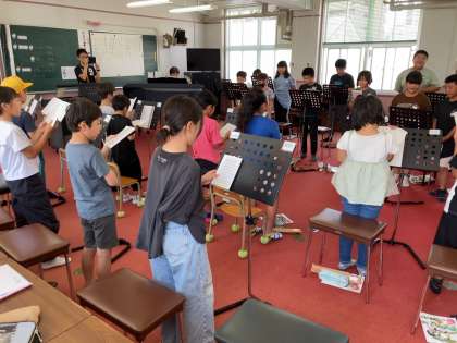 3年生と5年生も1学期最後の音楽を合同で行っていました。