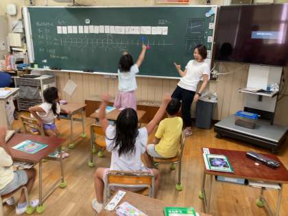 先生チーム対子どもチームで取り組みましたが大接戦で大盛り上がりでした。
