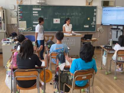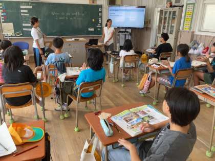 今日はC-NETの先生も来てくださっており、リズムに乗って楽しく英語の会話に取り組んでいました。
