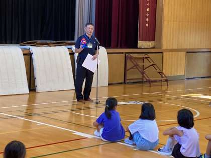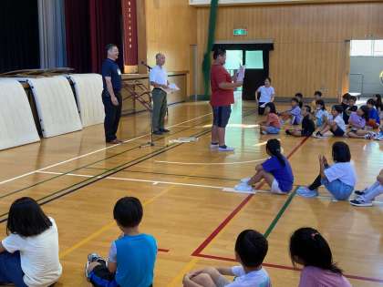 児童集会では、御栗区長より東成区の体力テストの表彰があり、5年生から3名が表彰されました。
