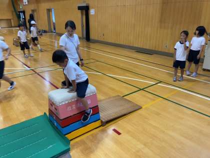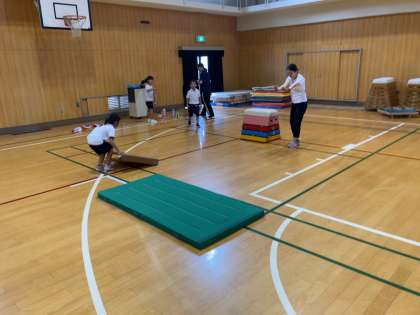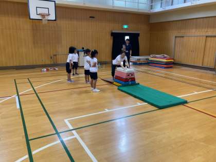 自分たちで準備をし、跳び箱に取り組んでいました。