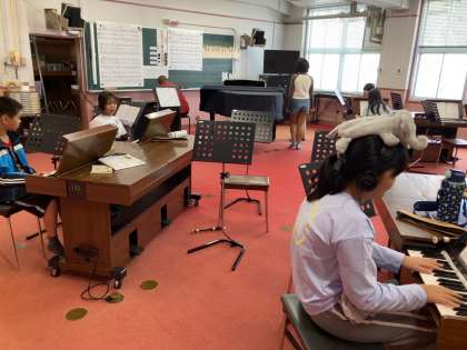 「キリマンジャロ」の音階を確認し、オルガンで練習していました。