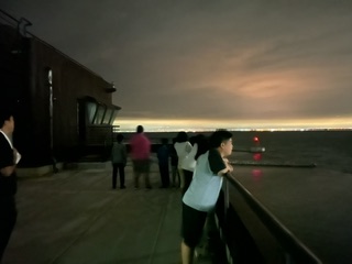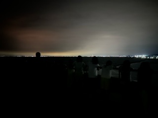キャンプファイヤーも終わり、風呂に入った後、屋上へ上がって夜景を見ています。