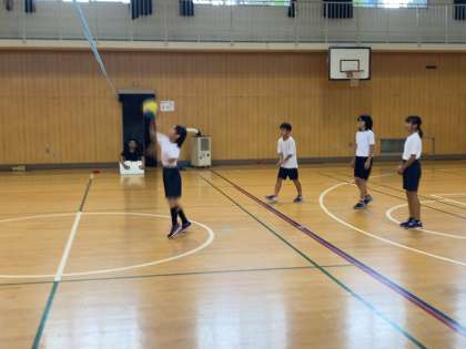 楽しそうにバレーボールに取り組んでいました。チームで声をかけあって、点が入るととても嬉しそうでした。