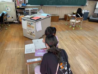 テストをやったあとは、図工やタブレットとそれぞれ自分の課題に取り組んでいました。