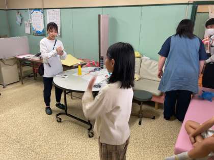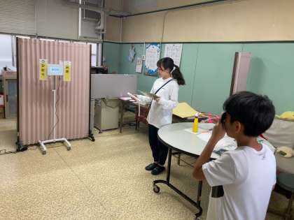 養護教諭の教育実習生に視力検査をしてもらっています。どうやら、春に比べると視力が落ちている子もいるようです。