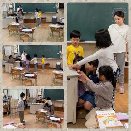 先生の机のながさを調べるのにみんなの定規を持ち寄っていますが、両端から調べてうまくいくかな?