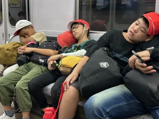 よく歩いたので、帰りの電車で寝ている子もいます。