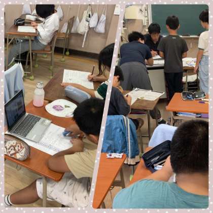 「流れる水のはたらき」の単元のまとめプリントに取り組んでいました。