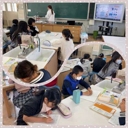 金属を温めたらどうなるかの実験を行い、まとめをしていました。