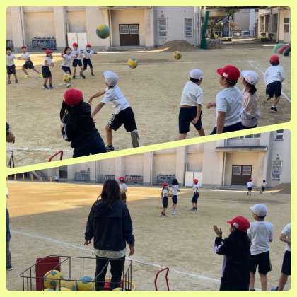2チームに分かれ、攻撃側全員が一斉にボールを投げ、守る側がボールを拾い集まるまでに何点取れるかを競います。