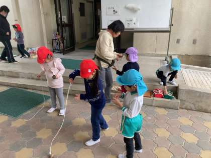 地域の方々も来てくださり、まりつきやあやとりを子どもたちに教えていただきました。
