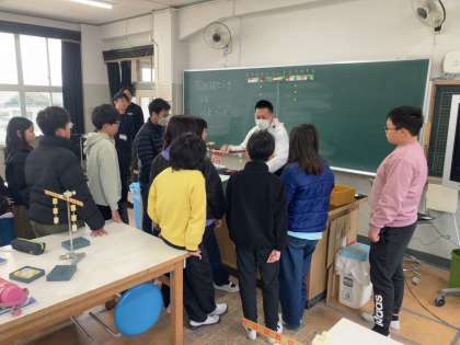 「てこのはたらき」の単元で、実験用てこを使い、あまりの重さと支点までの距離のつりあいの規則性について考え、実験していました。