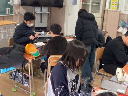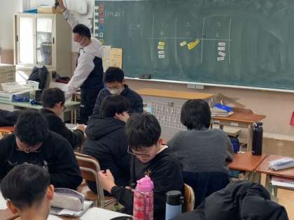卒業式の呼びかけのセリフをチームごとで話し合っていました。