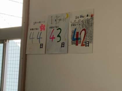 廊下には卒業までのカウントダウンが始まっており卒業が近づいていることが感じられます。