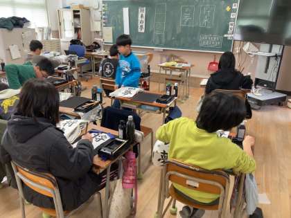 細長い半紙は普段使わないので緊張しますね。普段の半紙で練習をしてから本番に取り組んでいました。