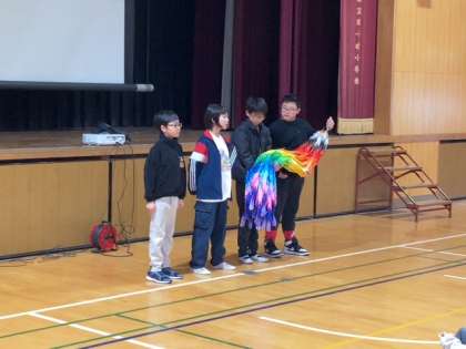 その後6年生から千羽鶴の披露がありました。6年生が各学年に声をかけて一緒に折った千羽鶴が完成したようです。