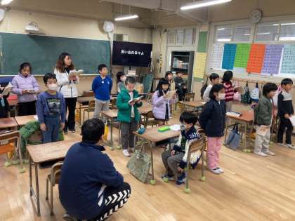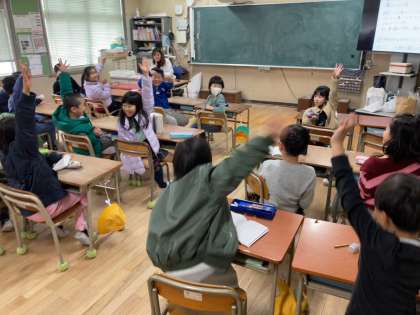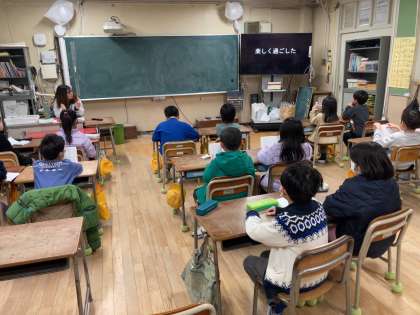授業の始めに6年生に向けたメッセージに関して話し合いをしていました。