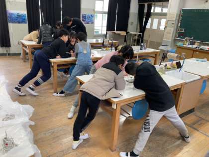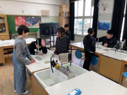 今日はでんぷんを混ぜた水を濾紙を使って濾過するとどうなるかを実験で確かめていました。