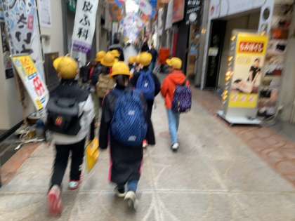 3年生が社会見学で大阪くらしの今昔館に向かっています。