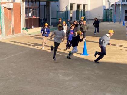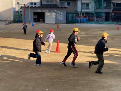 今日は1年生と6年生が東小橋タイムにマラソンをしています。