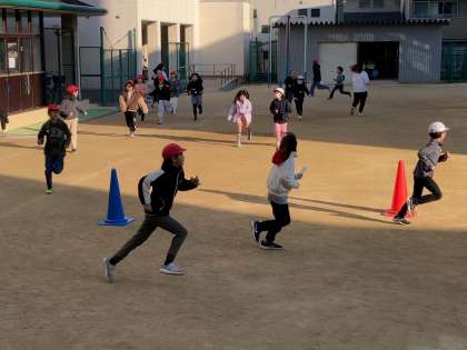 金曜日は2年生と4年生が東小橋タイムでマラソンをしています。