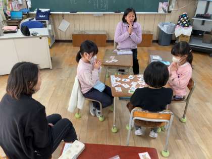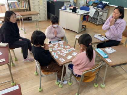 C-NETの先生に来てもらい英語のカルタを楽しんでいました。