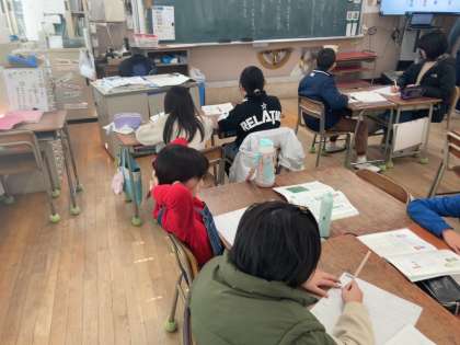 「調べたことを報告しよう」の単元でまずは調べたいこと決め、それぞれのチームに分かれています。