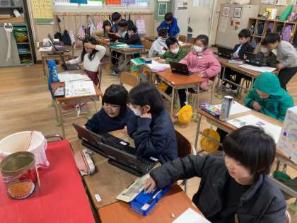 自分の成長を綴る冊子の完成が近づいているようです。タブレット端末を使いプレゼンのようなものを作っている子もおり、どんなふうにまとめていくのか楽しみです。