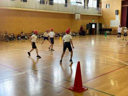 その後はみんな交えてのドッジボールをしていました。来年は6年生として新1年生を迎えてあげてください。