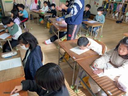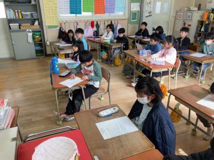 はじめは声をそろえるのも難しそうにしていましたが、しっかり練習して元気な声を6年生に届けてくださいね。