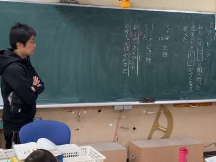 「くわしく表す言葉」の単元の学習をしていました。まずは、文の主語、述語の関係を見つけ、詳しく表す言葉を見つけていっていました。