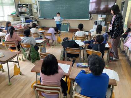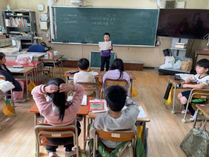 「くらべてつたえよう」の単元の最後に発表会をしていました。自分で調べたことについてみんなの前で発表です。みんな上手にまとめて発表できていました。