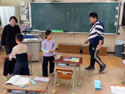 今日は漢字リレーをしていました。この1年間で習った漢字を思い出して一つずつ書いていき、チョークをバトンに2チームで勝負をしています。こうやって楽しく漢字に取り組むのもいいですね。